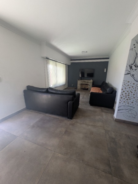 El inmueble se distribuye en dos plantas. La planta baja consta de Estar living con amplio ventanal hacia el frente con hogar y leños a gas; Comedor diario con amplio ventanal hacia el parque; Cocina integrada por arcada al comedor con mesada, bajo mesada, alacenas, cocina y purificador; Toilette; Garaje quincho amplio en “L” con capacidad para varios vehículos, portón corredizo, mesada, bajo mesada y alacenas, conexión para lavarropas, lavavajillas, y toilette auxiliar; Entrada de vehículos con portón corredizo automatizado; Patio semicubierto con techo de madera a la vista; y Gran parque.