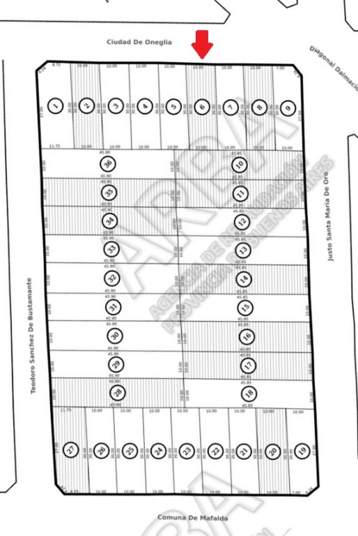 El terreno mide 10 metros de frente por 30 metros de fondo. Superficie total: 300 m2.